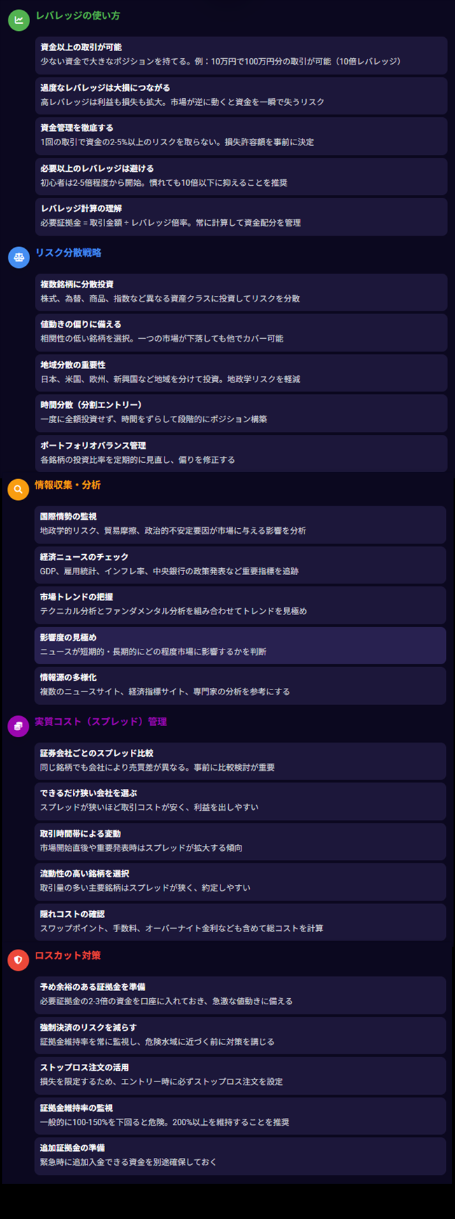 CFD取引は「資金管理+リスク分散」がカギ。高レバレッジの魅力に惑わされず、コツコツと長期目線で続けるのがおすすめです。