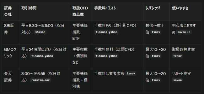 ・SBI証券は「くりっく株365」という取引所CFDで、円建て取引のため為替変動リスクが少なく、安心感があります。
