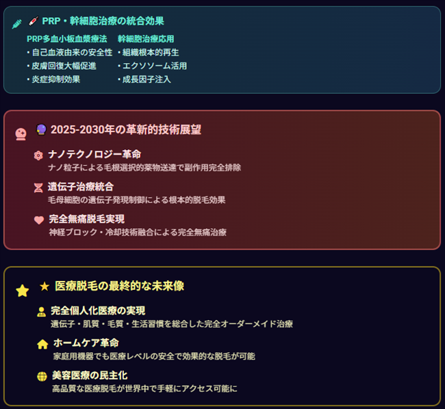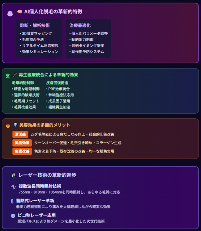 医療脱毛は「8~10回」が目安ですが、個人の毛質・部位によって異なります。しっかり効果を感じたいなら、クリニック比較・口コミも参考にして、自分に合った脱毛方法を選びましょう。今後は技術革新により、より安全で効果的、かつ美肌にも配慮された未来の脱毛体験が期待されます。