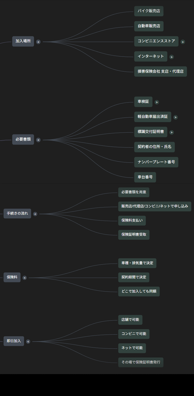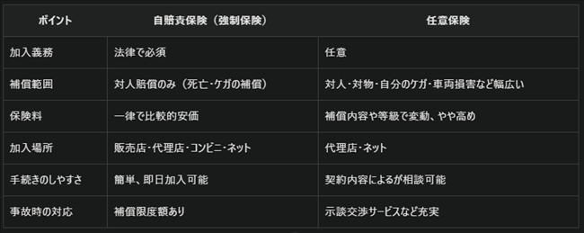 自賠責保険は法律で加入が義務付けられているため、バイクや車を持ったら必ず加入しなければなりません。加入方法は販売店や保険代理店、コンビニやインターネットなど複数の選択肢があり、初心者でも簡単に手続きができます。
