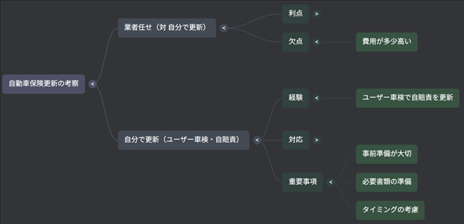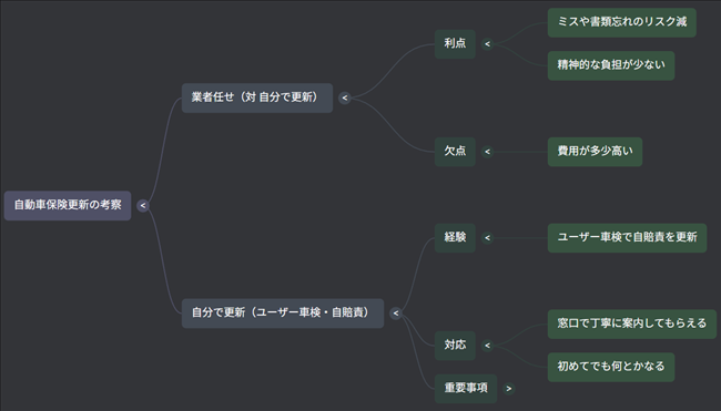 初心者なら「車検のときに一緒に更新」が絶対おすすめ。自分で更新する場合も、必要書類や期限管理ができればそれほど難しくないので自信がつきます。自賠責保険は「加入し忘れると罰則」もあるため、手間やミスを減らす意味でも、まとめての更新が一番です。