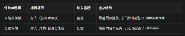 初心者として感じたのは、自賠責保険は「最低限の安心をくれる制度」だということです。手続きが簡単で、誰でも平等に補償が受けられる一方、補償額には限界があります。