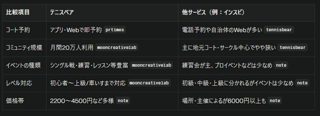 ・自分のレベルや都合に合ったイベントが探しやすく、社会人になってもテニス仲間ができ、公式戦にも挑戦できるようになったという実体験が多数。
